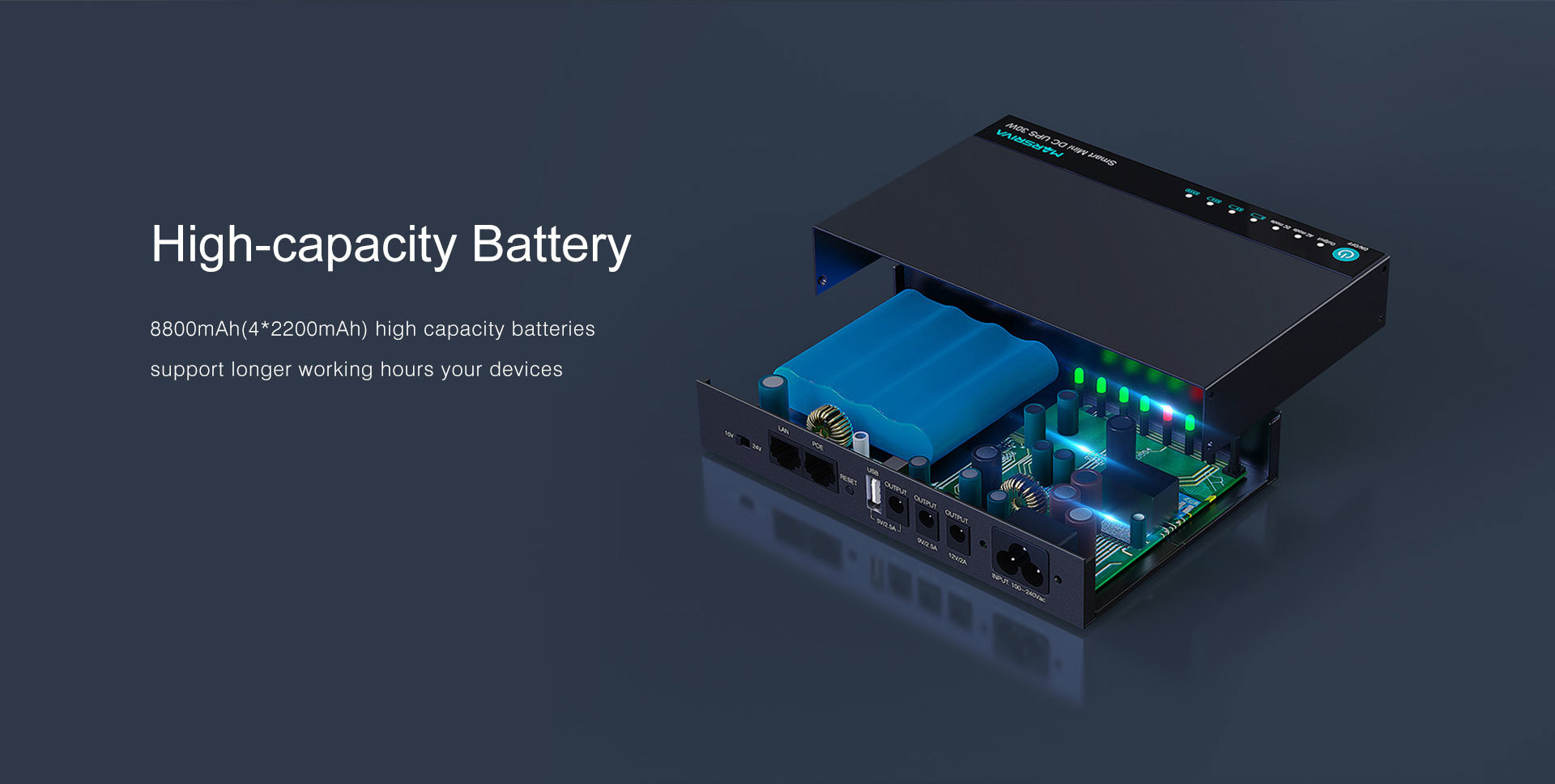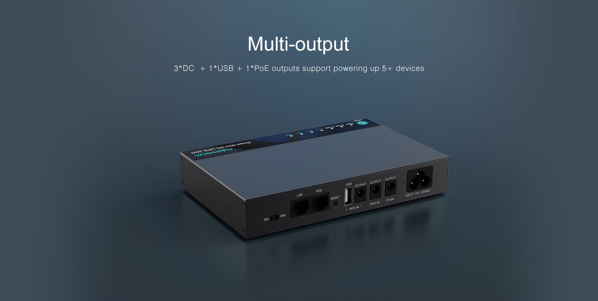 - 3*DC + 1*USB + 1*PoE outputs support powering up 5+ devices
